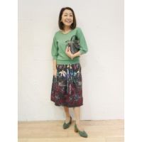 ボン・サンスフラワープリント&刺しゅうデザインスカート