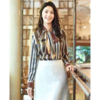 ナラカミーチェ共布スカーフ付ランダムストライプ柄サテン長袖ブラウス