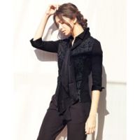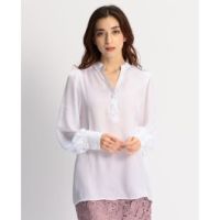 ナラカミーチェリボン付フロントレースデザイン七分袖シャツ