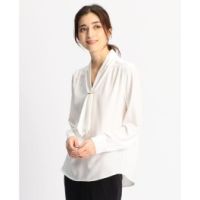 ナラカミーチェバックサテンジョーゼットボウタイアクセント長袖ブラウス