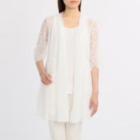 シルバーミントシュガーチュールコンビネーション花柄刺しゅうアクセントトッパーカーディガン