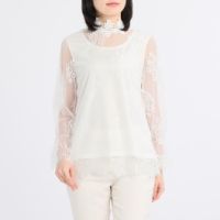 シルバーミントシュガーハイネックレーシーブラウス