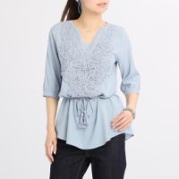 シルバーミントシュガー刺しゅうアクセントチュニックブラウス