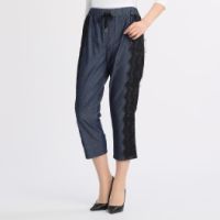 <インディゴ>シルバーミントシュガーレースアクセントテーパードパンツ