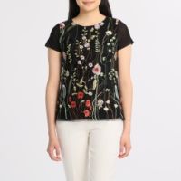シルバーミントシュガーボタニカルカラフルチュール刺しゅう半袖プルオーバー