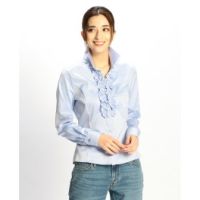 ナラカミーチェ綿混ツイルフリルアクセントスタンドカラー長袖シャツ
