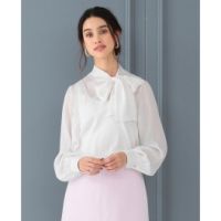 ナラカミーチェバックサテンジョーゼットボウタイアクセント長袖ブラウス