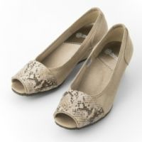足指が見えない程度の、上品なオープントウパンプスです。3層構造のインソールを使い、体圧を分散して歩行時の負担を軽減。