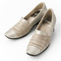 異素材をコンビネーションした、スタイリッシュなデザインのパンプスです。3層構造のインソールが体圧を分散し、歩行時の負担を軽減。