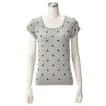 「スキーネペッレ」より、フレンチ袖のトップスをご紹介します。メランジをベースにジャガード編みでドット柄を施した、遊び心溢れるデザイン。