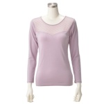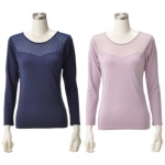 「スタイルメーカー」から、シンプルな中にも、エレガントな雰囲気が漂う長袖トップスです。なめらかで柔らかさのある肌触りの綿モダール混素材を身生地に、胸元は国産ジャガード編みの、格子柄パワーネットを使用。…