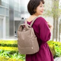 フランスの焼き菓子“フィナンシェ”をイメージした、上品な大人の3wayバッグ。ショルダー、リュック、トートの3種類の使い方が可能です。