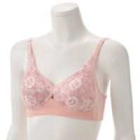 左右のカップを別々に支える特許構造の「ツインクロス」から、ノンワイヤーのブラジャーです。日本製のレースを使用した、綿混メッシュプラスシリーズ。