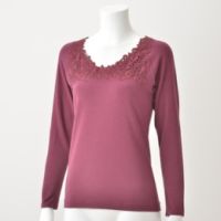 ネック周りにふんだんに施されたケミカルレースが目を引くトップスです。どのサイズもレースがたっぷりと美しく見えるように計算されたデザイン。