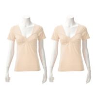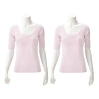 ブラ機能とインナーが一体化した、便利な半袖インナーです。身生地は綿混の伸縮素材で、やさしく体にフィットする着心地に。