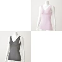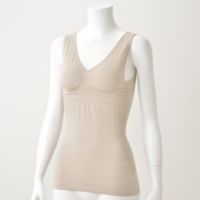 伸縮性のあるポリウレタン混紡糸を、丸編みの技術で360度筒状に編み立てる、シームレス成形編みのブラタンクです。