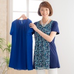 「麻布プロバドール」から、柔らかな肌ざわりのシフォンと、伸縮性のあるカットソー素材を使った、レイヤードチュニックです。