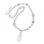 「Makana na Kathy(マカナナキャシー)」のコレクションから、貝殻に透かし彫りを施したトップパーツが爽やかなネックレスです。