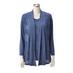 体的パターンニング、着心地にこだわったものづくりを追求する「麻布プロバドール」から、カーディガンとプルオーバーをセットにしたアンサンブルです。