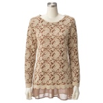 「MALIANI(マリアーニ)」から、レースのチュニックと長袖インナーの2点セットをご紹介します。チュニックは花柄ストレッチレースが全面にあしらわれており、華やかでエレガントな雰囲気。