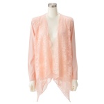 「CLEO SUN」から、伸縮性に富んだカットソーの前身頃にレースを施し、袖はシフォンで切り替えたプルオーバーです。