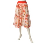 「AZUL TeuVe」から、肌触りの良いカットソー素材とチュール素材を組合せたスカートです。内側にプリント柄が、チュールの透け感と重なってエレガントに。