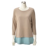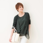「麻布プロバドール」より、肌触りがやわらかな、シフォンシャツとカットソー素材のインナーとのアンサンブルです。