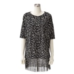 立体的パターニング、着心地にこだわったものづくりを追求しているブランド「麻布プロバドール」から、異素材組合せのエレガントなアンサンブルです。