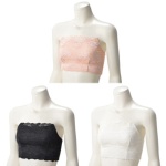 ストラップなし、お腹周りの生地もない、バスト部分のみだけの楽なレースのキャミソール。背中部分はパワーネットとよく伸びるゴム仕立てで、圧迫感がなくラクに着用いただけます。