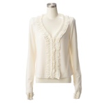 「ブラデリスニューヨーク ピース」から、前身頃にレースを重ねたエレガントなニットカーディガンをご紹介。