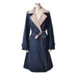 「AZUL TeuVe」から、表面がさらりとした、肌あたりの良い素材で仕立てたトレンチコートです。大きめの衿が特徴的なデザイン。前に垂れるドレープが、大人エレガントなシルエットを演出します。後ろ中心には深いスリットが入っているので、前を閉めて着用しても動きやすく、裏地のないタイプですので、ざっくり羽織ってかっこよく決まるアイテムです。