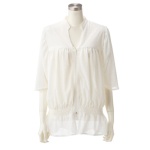 繊細なプリーツ加工を駆使して作り上げる、優しい色彩と質感の世界。デザイナー大野ノコさんによる大人の品格と色香、可憐さがただよう「ノコオーノ」から、柔らかな素材で仕立てたブラウスジャケットです。