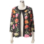 花モチーフ&スカラップ 配色刺繍ジャケット