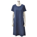 立体的パターンニングや着心地にこだわる「麻布プロバドール」から、ストライプをバイヤスに切替えた、遊び心のあるカッティングのワンピースをご紹介。