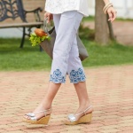Soobinie洗練可愛い刺繍レースコンビクロップドパンツ