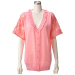 繊細かつゴージャスなレースを袖にあしらった、上品なカーディガンです。透け感のあるレースが、可愛らしさを演出。