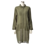「RosePeche」から、シンプルなロングシャツです。綿、レーヨン素材の楊柳生地を使用。肌あたりも優しく、ふんわり柔らかな風合いが魅力です。