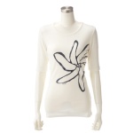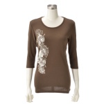 前身頃にあしらわれた花モチーフのレースが、可愛らしく上品な雰囲気を漂わせるプルオーバーです。程よくドレープ感のあるカットソーで、肌触りが優しく着心地の良い一枚。