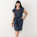 ほのかな光沢と柔らかさが魅力のテンセルデニムを使用。カジュアルすぎない、女性らしい雰囲気のワンピースです。
