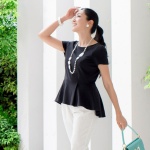 「ANELALUX(アネラリュクス)」から、ペプラムラインのプルオーバーです。表面に凸凹とした立体感のある程よい肉感の素材を使用。