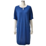「Ange dodu(アンジェ ドデュー)」から、ストレッチ性のある生地を使ったVネックワンピースです。前中心は、ボーダーを斜めに切り替えることで、細見せ効果を出しています。ゆとりを持たせたシルエットが、気になるお腹とお尻まわりをすっきり見せてくれます。