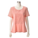 東京ソワール 半袖スクエアーカラーレースカットソー