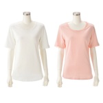 「コットンファクトリー」のコレションから、適度に開いたラウンドネックが、首元を綺麗に見せてくれるTシャツです。