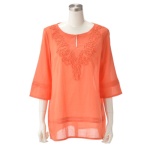 RosePeche モチーフ刺繍カフタンブラウス