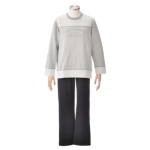 ちょっとそこまで出かけたい時にも気軽に使えるスタイリッシュなデザインのリラクシングウェアです。トップスの襟部分は、スタンドカラータイプの襟となっていて、シンプルで上品な装いを演出します。