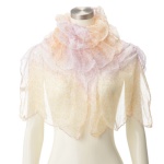 女優、岡田可愛さんが総合プロデュースするブランド「KawaiOkada」のコレクション。異素材切替えでアクセントをつけたニット&ジョーゼットのプルオーバーです。