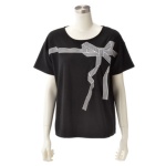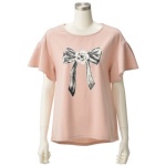 「&LOVE」から、グログランテープをリボンの形に縫い付けたプルオーバーです。なめらかで、優しい肌ざわりの素材を使用。