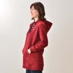 ・ツイード調に見えるプリント生地のフーディー・生地の裏面が起毛した、ウォーム感のあるカットソー素材・前ファスナー途中開きのプルオーバーで、フードは前中心側を少し高めに設定・着丈は前後差があり、前はお腹…