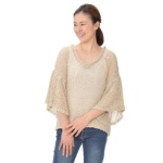 前身頃に施した立体的でぷくぷくとしたドット柄編みが、優しい印象のプルオーバーです。ゆったりとした身ごろと、裾広がりのデザインがポイント。