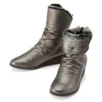 足首まわりにシャーリングを施した、エレガントなショートブーツです。インソールは1.8mmの発泡ウレタンクッションと、アーチクッションを装着したダブルクッション構造。